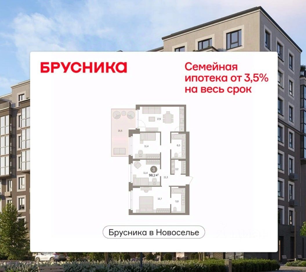 Продается 3-комн. квартира с предчистовой отделкой в ЖК "Брусника в Новоселье" на 1 этаже. Общая площадь: 98.11 кв.м., жилая: 38.5 кв.м., площадь просторной кухни-столовой: 17.9 кв.м. Комнаты изолированные, все окна выходят на одну сторону. В квартире один балкон, два совмещенных санузла. Терраса представляет собой роскошную зону отдыха, где вы на свой вкус можете создать атмосферу комфорта и уюта. Высота потолков 2.7 м.
