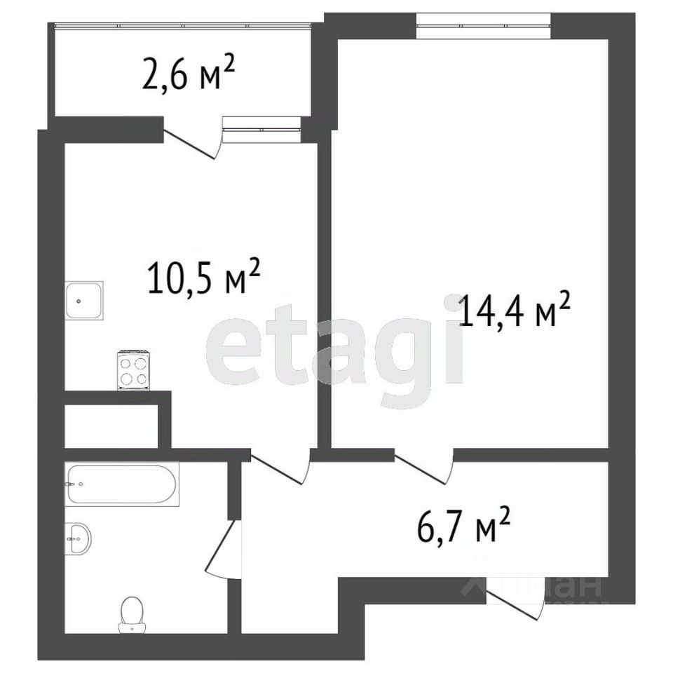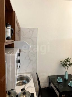 Объект переоборудован в 2 автономные студии с отдельными санузлами и кухонными зонами (10,4 и 16,1 кв.м), при этом перепланировка выполнена без переноса мокрых точек, что позволяет легко вернуть исходную конфигурацию.