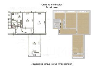 Очень хороший ремонт, заменены все водопроводные трубы, электропроводка частично заменена, качественные стеклопакеты Pexay, застекленная лоджия. На полу - ламинит повышенной прочности.