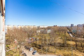 Теплый панельный дом 1 ЛГ- 600А 1971 года постройки расположен в зеленом, благоустроенном микрорайоне. До метро пр. Ветеранов 25 - 35 минут на общественном транспорте.