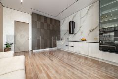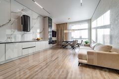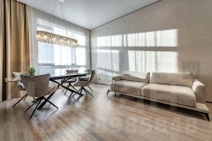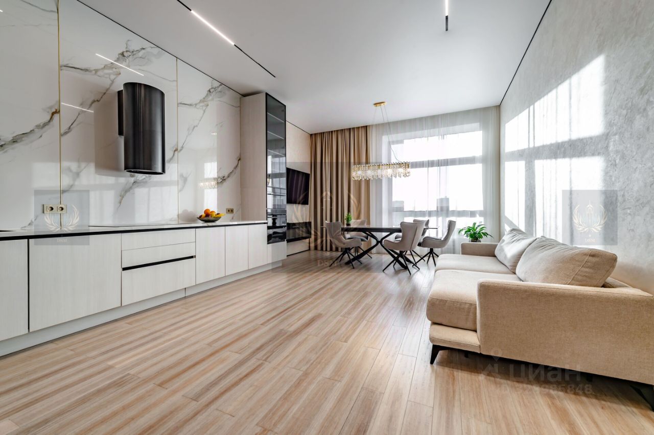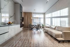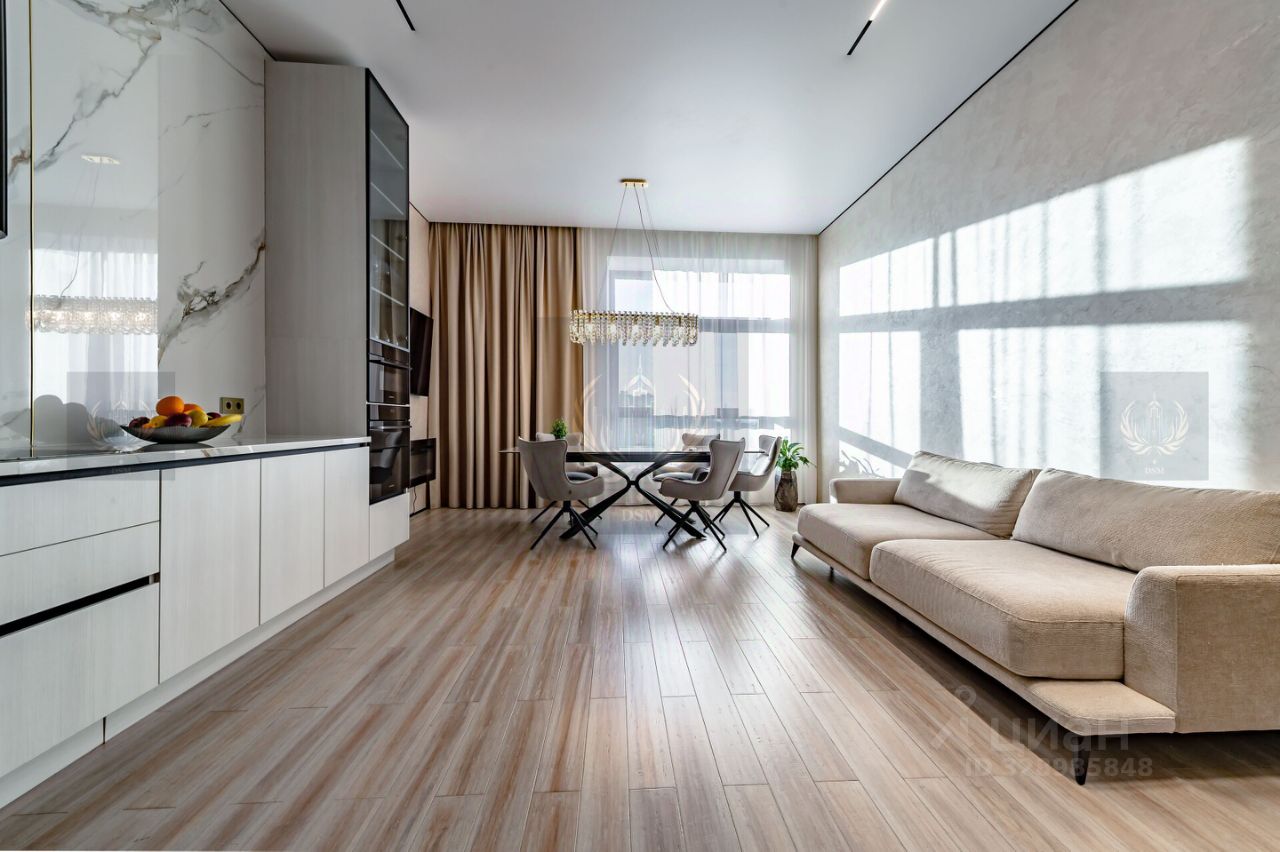 Продуманная планировка включает в себя просторные комнаты с высокими потолками. Особое внимание заслуживает кухня, выполненная по индивидуальному проекту с использованием премиальных материалов.
