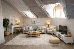 * Высокие потолки и большие окна, наполняющие комнату светом.
