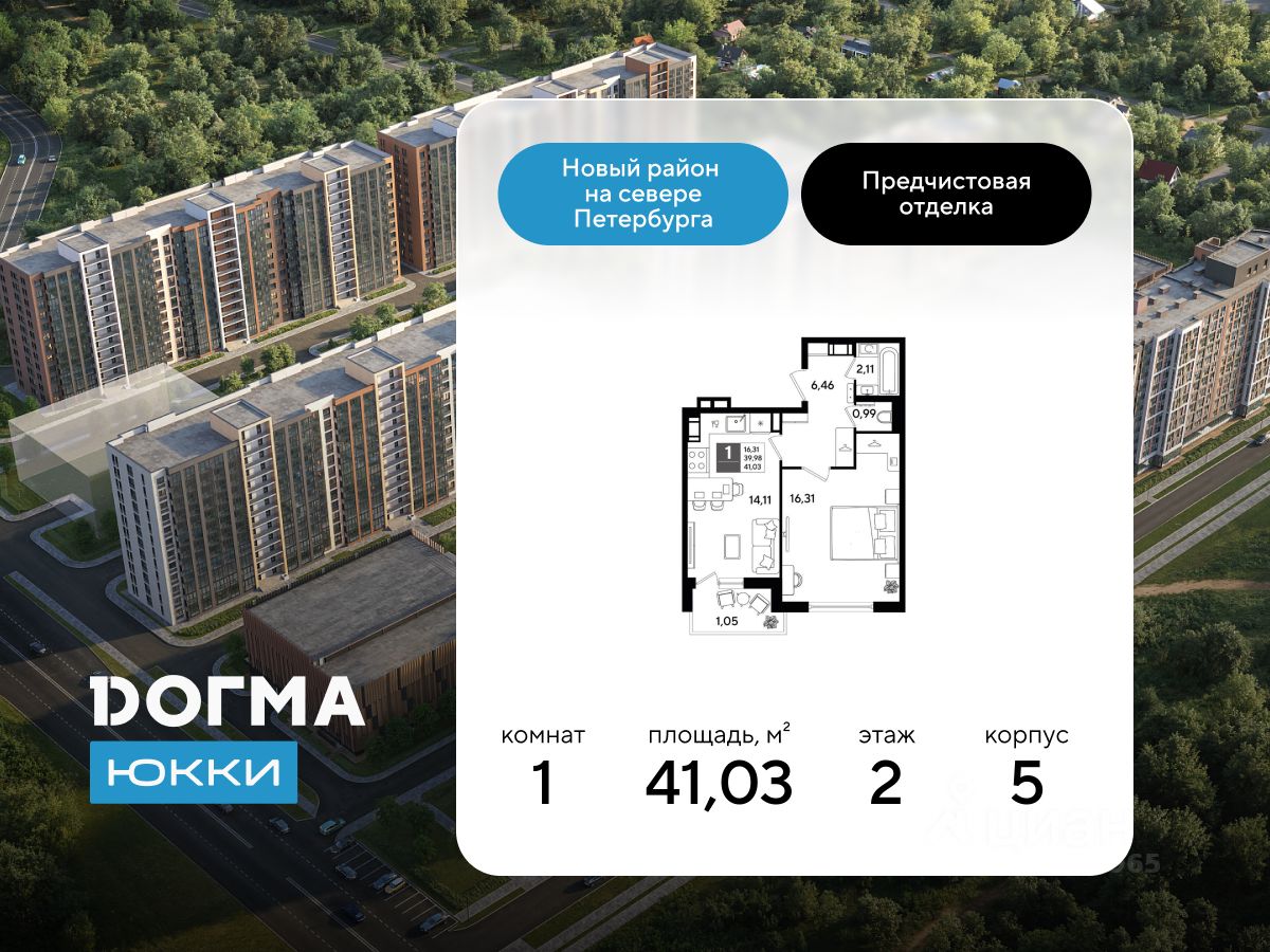 В продаже 1-комнатная квартира от застройщика ЖК "Догма Юкки" в Ленинградской области.