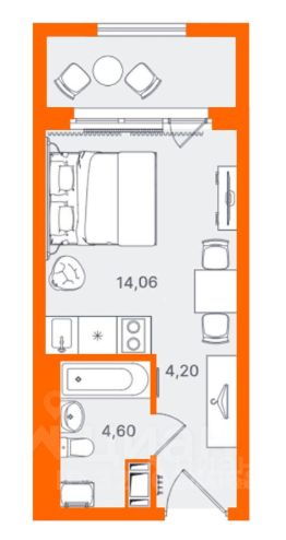 Апартаменты-студия, 22,9 м²