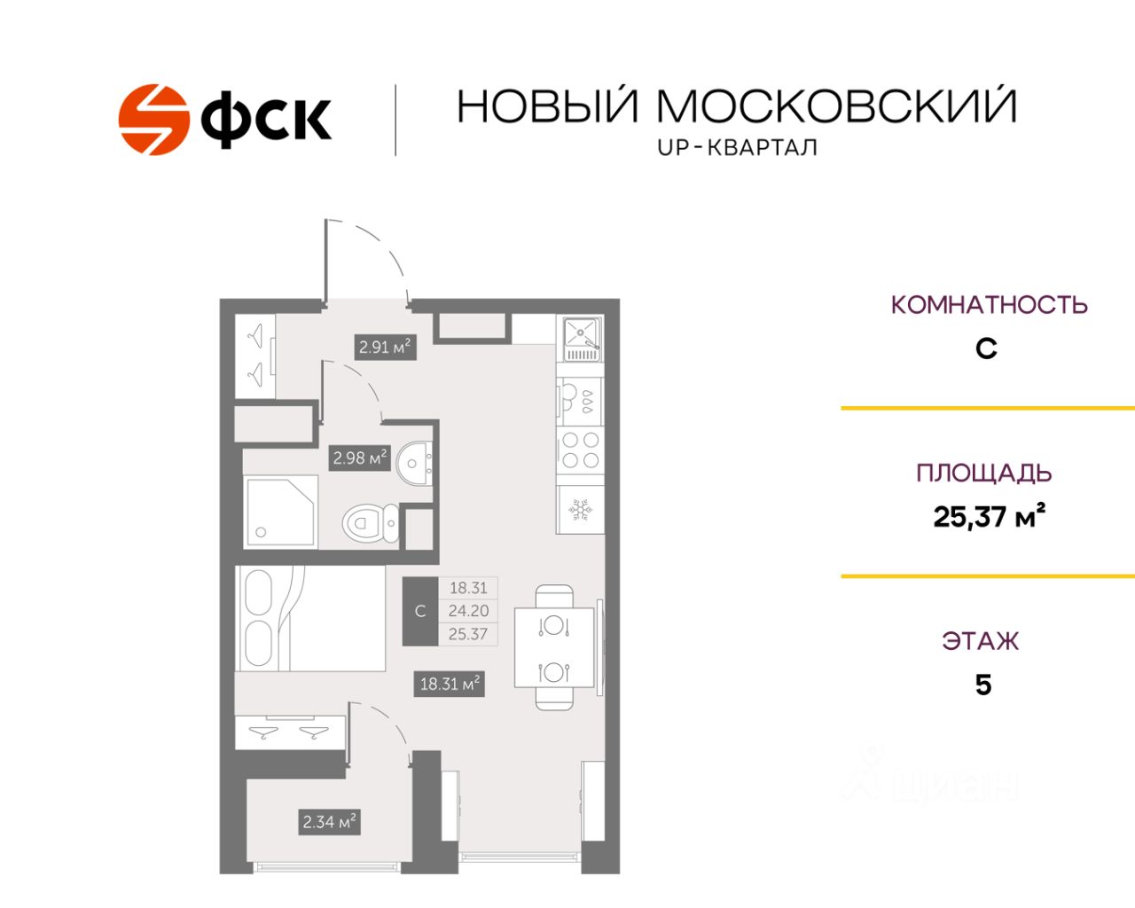 Прямая продажа от застройщика. Беспроцентная рассрочка. Студия в ЖК Квартал "Новый Московский" на 5-м этаже. Общая площадь 25. Чистовая отделка.