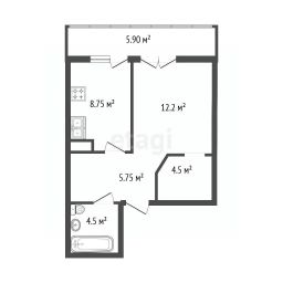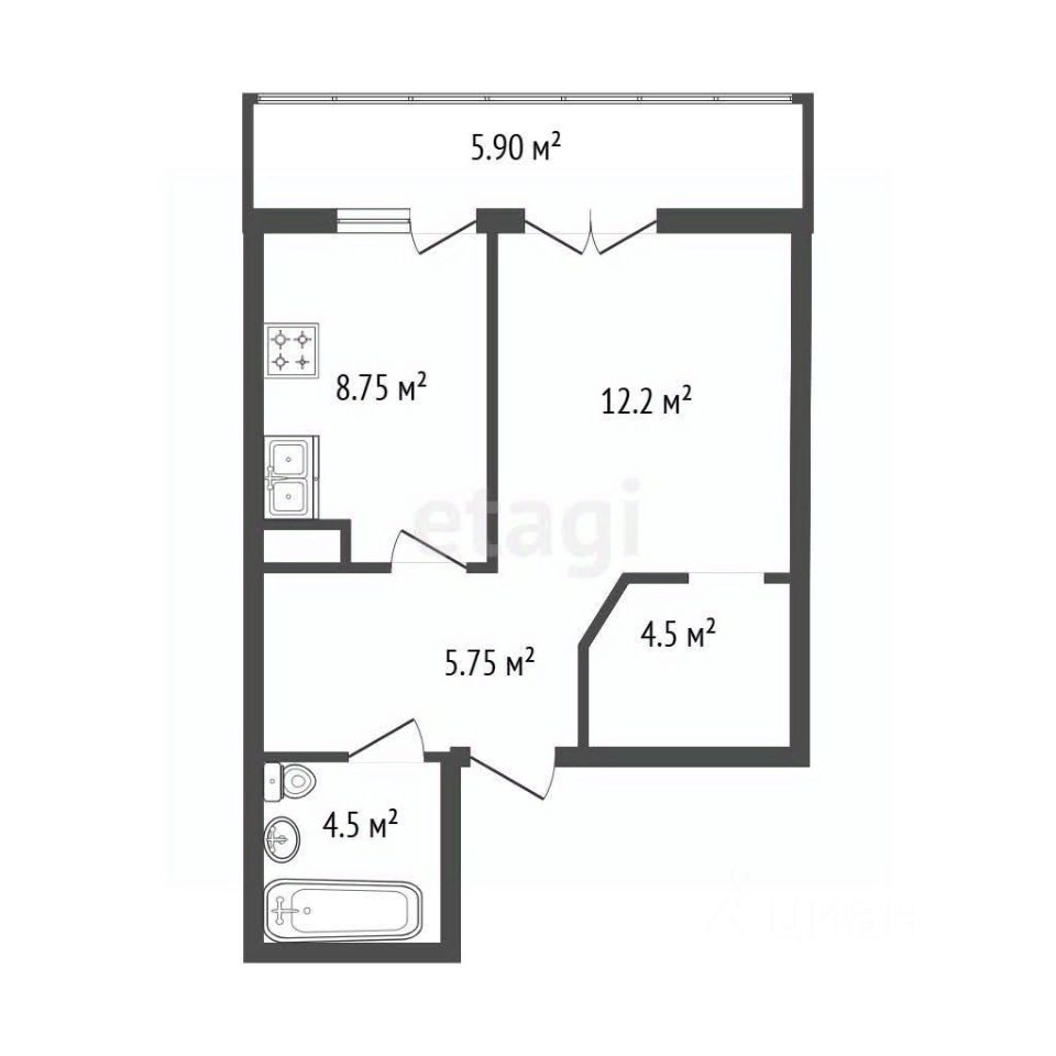 Особое преимущество — большой балкон площадью 5,9 м², который значительно расширяет полезное пространство и идеально подходит для зоны отдыха с видом на красивые закаты.