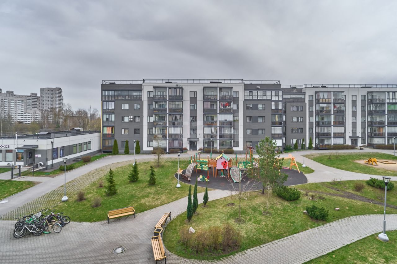 - Игровые площадки, футбольное поле, хоккейная коробка, уличные тренажёры и велодорожки.