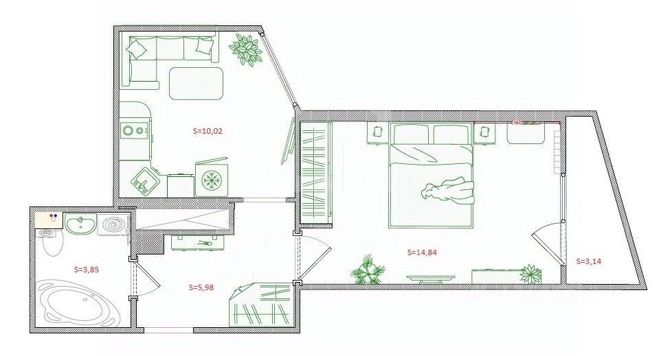 Общая площадь квартиры составляет 37,83 кв. м, из которых 14,84 кв. м — жилая площадь. Просторная кухня площадью 10,02 кв. м станет местом для семейных ужинов или дружеских посиделок. Изолированные комнаты создают комфорт для каждого члена семьи.