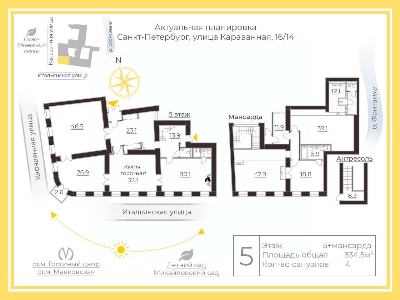 В самом сердце Центрального района, в любимой Петербуржцами и гостями города локации, рядом с Михайловским Замком и Летним садом, на Манежной площади, предлагается к продаже просторная двухэтажная квартира. Высокие потолки, лепнина, анфилада комнат и общий антураж квартиры погружают в атмосферу исторического Петербурга.