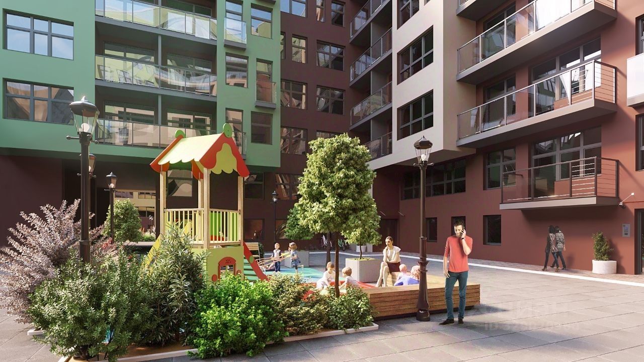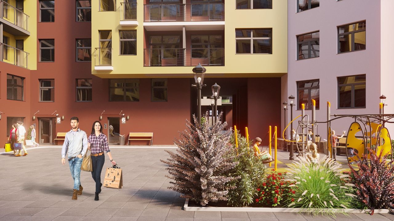 Доступ на территорию жилого комплекса закрыт для посторонних. Во внутренних дворах разместились игровые площадки для детей разных возрастов, зоны для отдыха и занятий спортом. Входы в парадные находятся со стороны внутренних дворов.