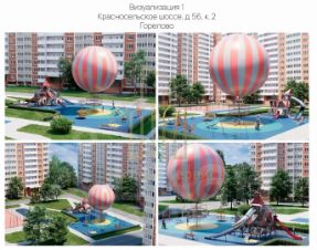 В ближайшее время во дворе будет построена новая детская площадка (см. визуализацию в фото)