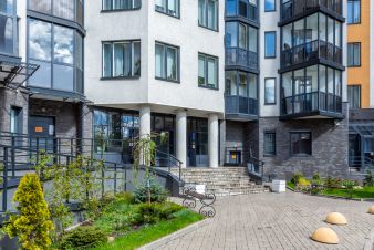 Дом построен финским застройщиком Lemminkinen — всего 154 квартиры, ухоженная территория, консьерж, видеонаблюдение, автономная котельная. Есть подземный паркинг и места для хранения велосипедов. Управление домом — профессиональная УК.