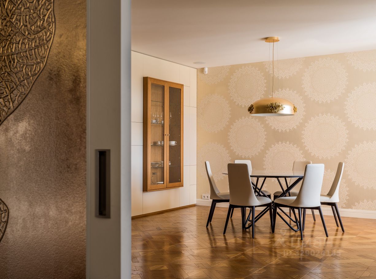 Интерьер создавался с вниманием к деталям: дубовый паркет с шумоизоляцией, двери из массива, светильники Artemide, сантехника Duravit, системы кондиционирования Daikin в каждой комнате. Установлены фильтры очистки воды, тёплые полы и система управления освещением KNX.