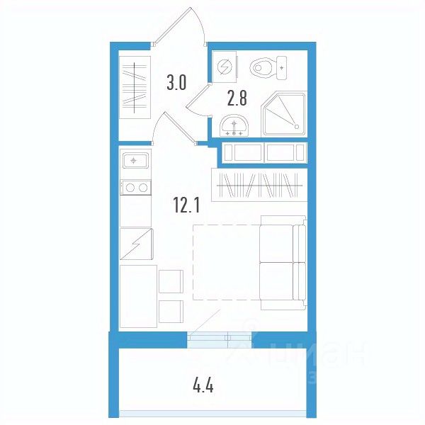 Продаётся студия в сданном доме (Старорусский пр-т, 3к2 (Дом 1)), срок сдачи: II-кв. 2025, общей площадью 19.2 кв.м., на 10 этаже.