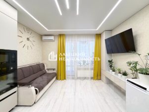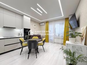 - В квартире сделан СВЕЖИЙ РЕМОНТ. На полу в комнате, прихожей, кухне и лоджии - ЛАМИНАТ, а туалет и ванная полностью отделаны ПЛИТКОЙ. Потолки во всей квартире натяжные с несколькими сценариями освещения. Мебель преимущественно делалась на заказ, и как и техника, остается по договоренности.