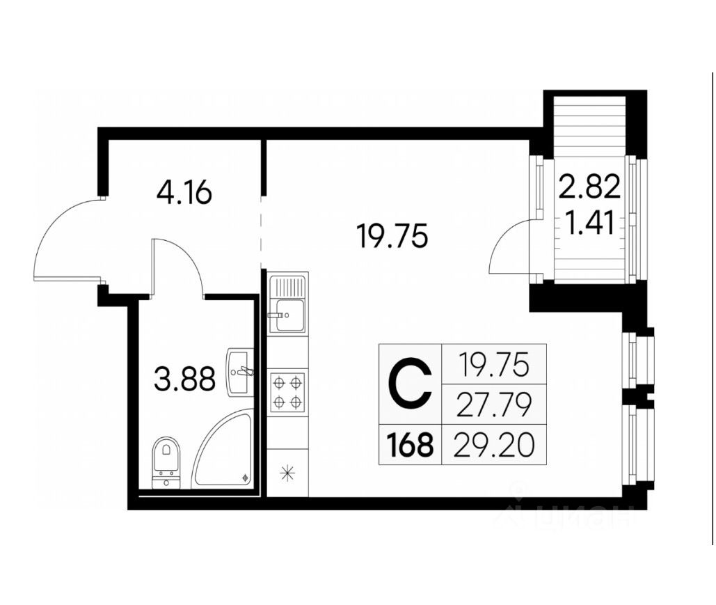 - удобная планировка позволяет расположить кухню и зону отдыха на ваш вкус