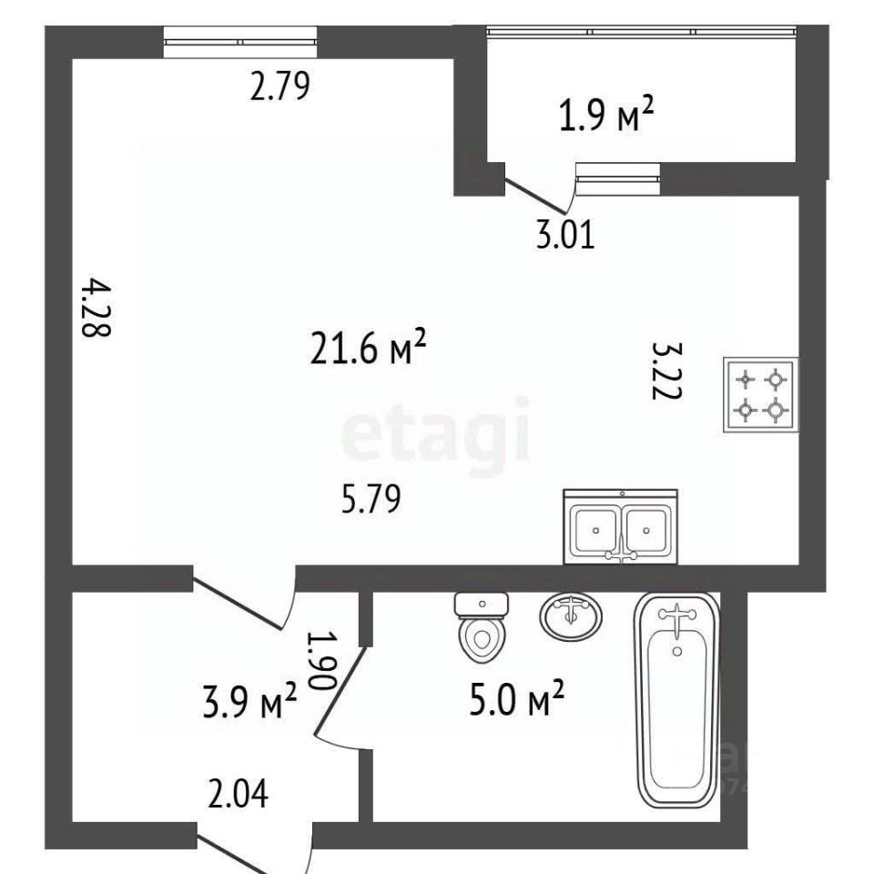 • Просторная студия 30,5 м² — два больших окна во двор и потолки 2,70 м. Квартира не кажется маленькой, наполнена светом и воздухом, выигрывает у аналогичных предложений меньшей площади.