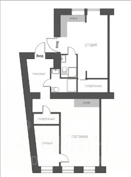 Продается квартира, разделенная на однокомнатную и студию с двумя отдельными входами.