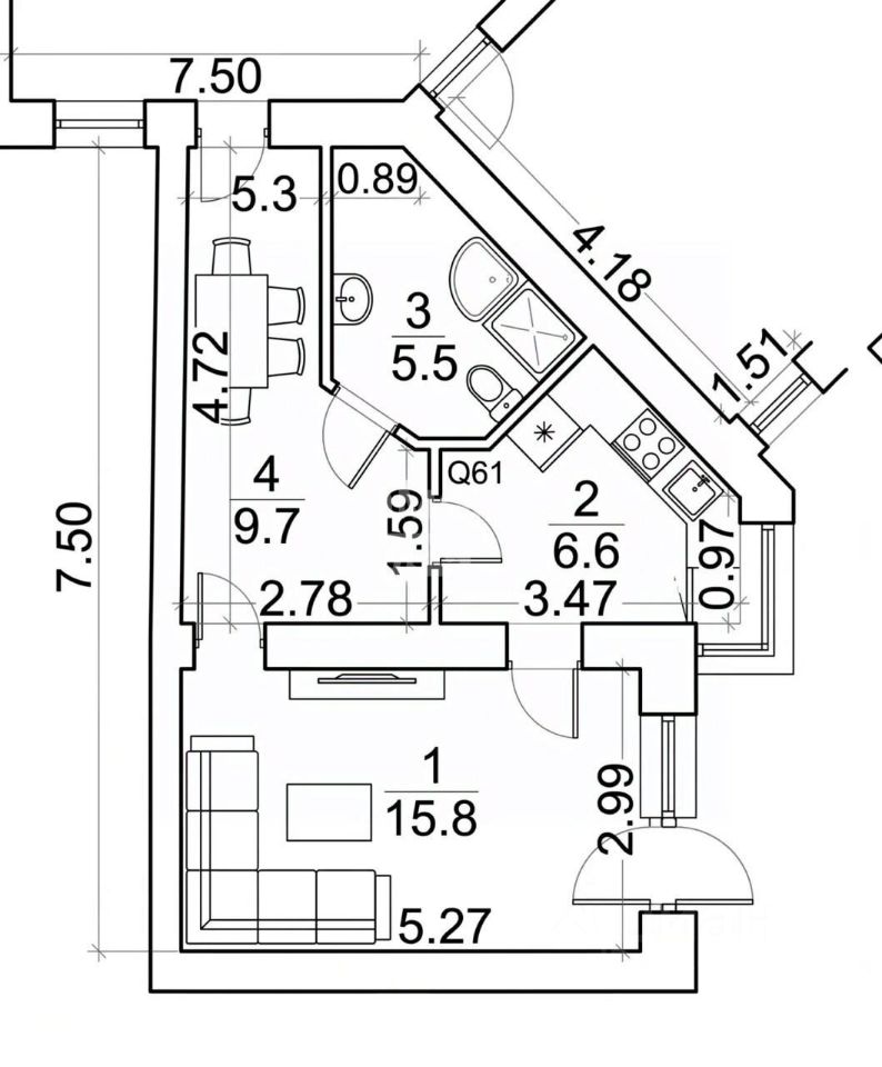 S-9.7 м2 позволяют использовать пространство по своему вкусу.
