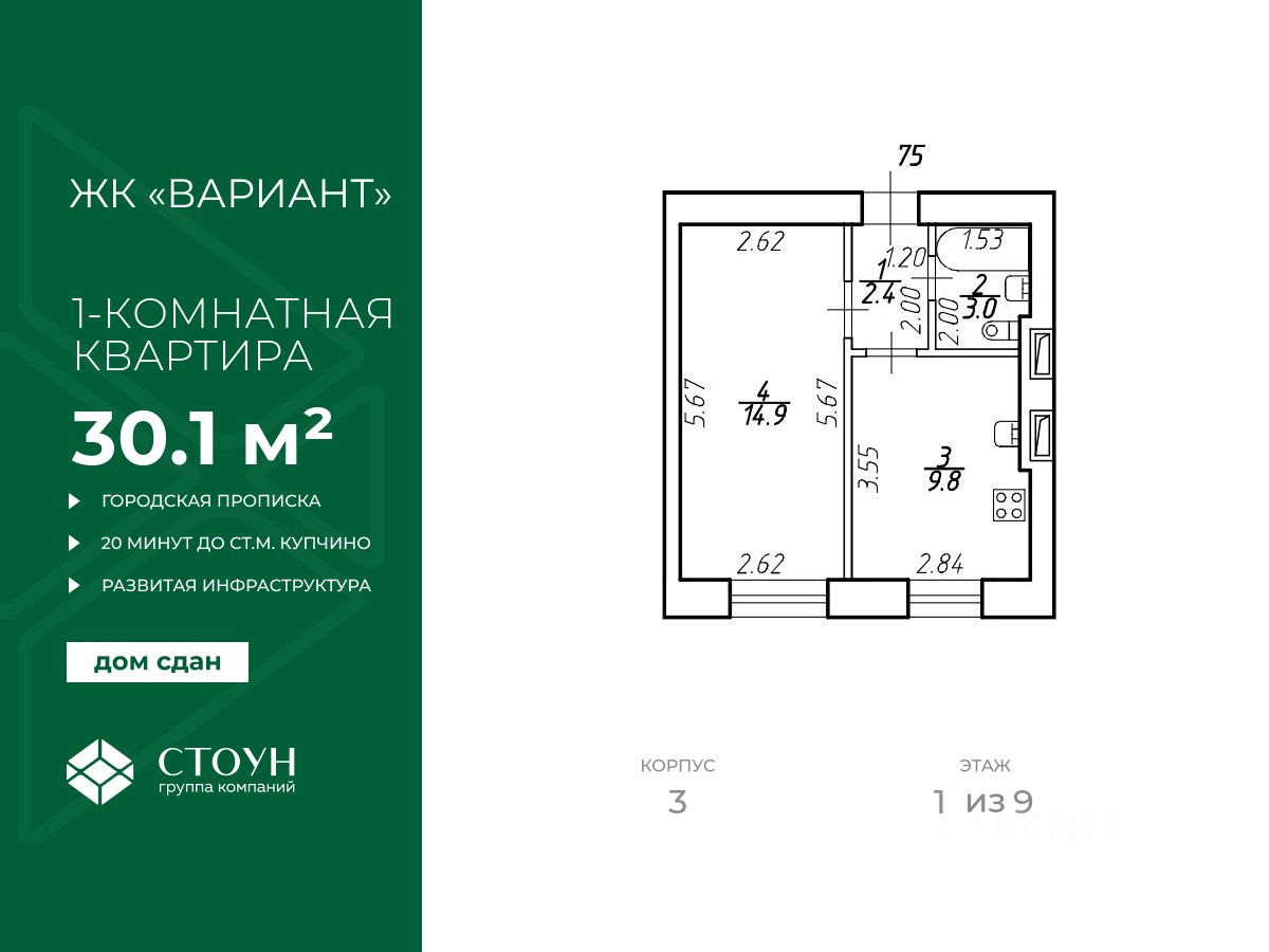 Продаётся 1-комнатная квартира в сданном доме (Московское, 256к5 (Корпус 3)), срок сдачи: III-кв. 2021, общей площадью 30.1 кв.м., на 1 этаже. На земельном участке в Шушарах (м/р Ленсоветовский), общей площадью 27155 кв.м. будет построено 8 кирпичных жилых домов: Высотность - девять этажей 1-5 этажи - без балкона 6-9 этажи - с балконами.