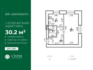 Продаётся 1-комнатная квартира в сданном доме (Московское, 256к6 (Корпус 2)), срок сдачи: III-кв. 2021, общей площадью 30.2 кв.м., на 1 этаже. На земельном участке в Шушарах (м/р Ленсоветовский), общей площадью 27155 кв.м. будет построено 8 кирпичных жилых домов: Высотность - девять этажей 1-5 этажи - без балкона 6-9 этажи - с балконами.