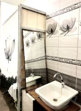 Комната расположена на солнечной стороне, что обеспечивает тепло зимой и приятное освещение в течение дня. В квартире предусмотрены три туалета и одна ванна, что значительно упрощает жизнь. Общая кухня оборудована всем необходимым: плитой, холодильником, микроволновой печью, а также есть отдельная комната для стирки со стиральной машиной.