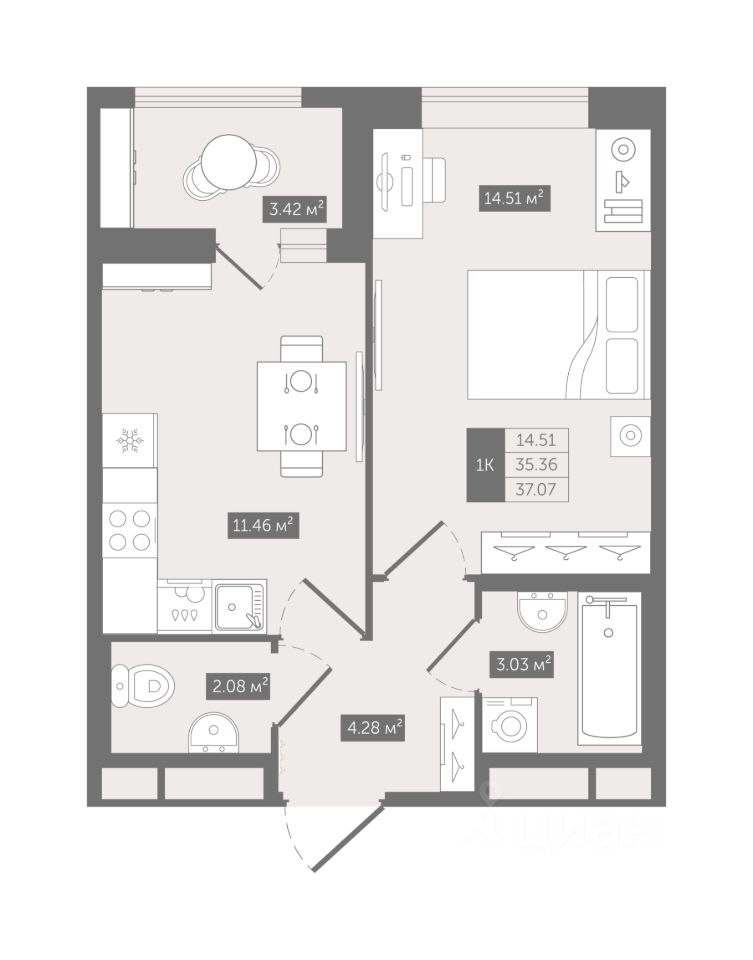 Цена со скидкой до 30% в прямой продаже от застройщика — только в этом месяце. Беспроцентная рассрочка. 1-к квартира в ЖК Квартал "Воронцовский" на 10-м этаже. Общая площадь 37,07. Без отделки.