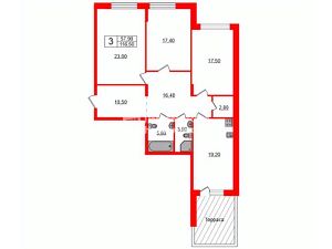 Фактический метраж квартиры с террасой 128 м2.