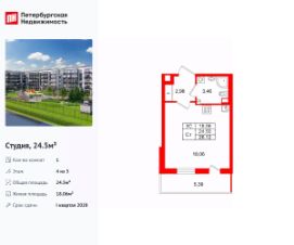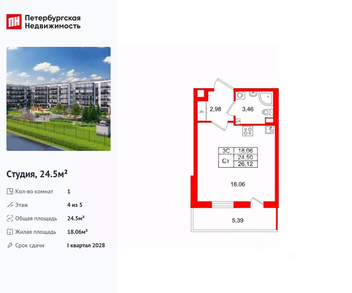 Продается просторная студия от застройщика в жилом комплексе "Парадный ансамбль" в престижном Московском районе.