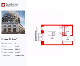Продается уютная студия от застройщика в жилом комплексе "Аристократ" в уютном Василеостровском районе. До метро можно добраться пешком всего за 10 минут. Удобная, классическая, функциональная европланировка, просторная прихожая 3.46 м². Общая площадь студии - 22.14 м², жилая 15.68 м², высота потолка 2.7 м. Квартира продается с отделкой "Норд Лайн бизнес". Что особенного в ЖК "Аристократ"? • Премиальная отделка квартир - Норд Лайн бизнес • Васильевский остров - историческая локация с современными культурными кластерами • Индивидуальный облик каждого корпуса в единой архитектурной концепции • 7 парадных лобби с потолками до 7-ми метров • Цветущие сады, зеленые гостиные, фонтаны • Клуб резидентов "Аристократ": фитнес-клуб, коворкинг, гостиная с роялем, детский центр с кинотеатром • Технологичная среда на территории, в доме и в квартире