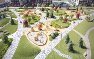 • Места притяжения: фонтан "Бионика", спортивный кластер со скейт-парком, фотозоны с арт-объектами