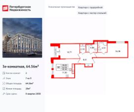 Уникальная, функциональная европланировка, большая кухня-гостиная 17.8 м², просторная прихожая 8.01 м². Общая площадь квартиры - 64.56 м², жилая 28 м², высота потолка 3 м.
