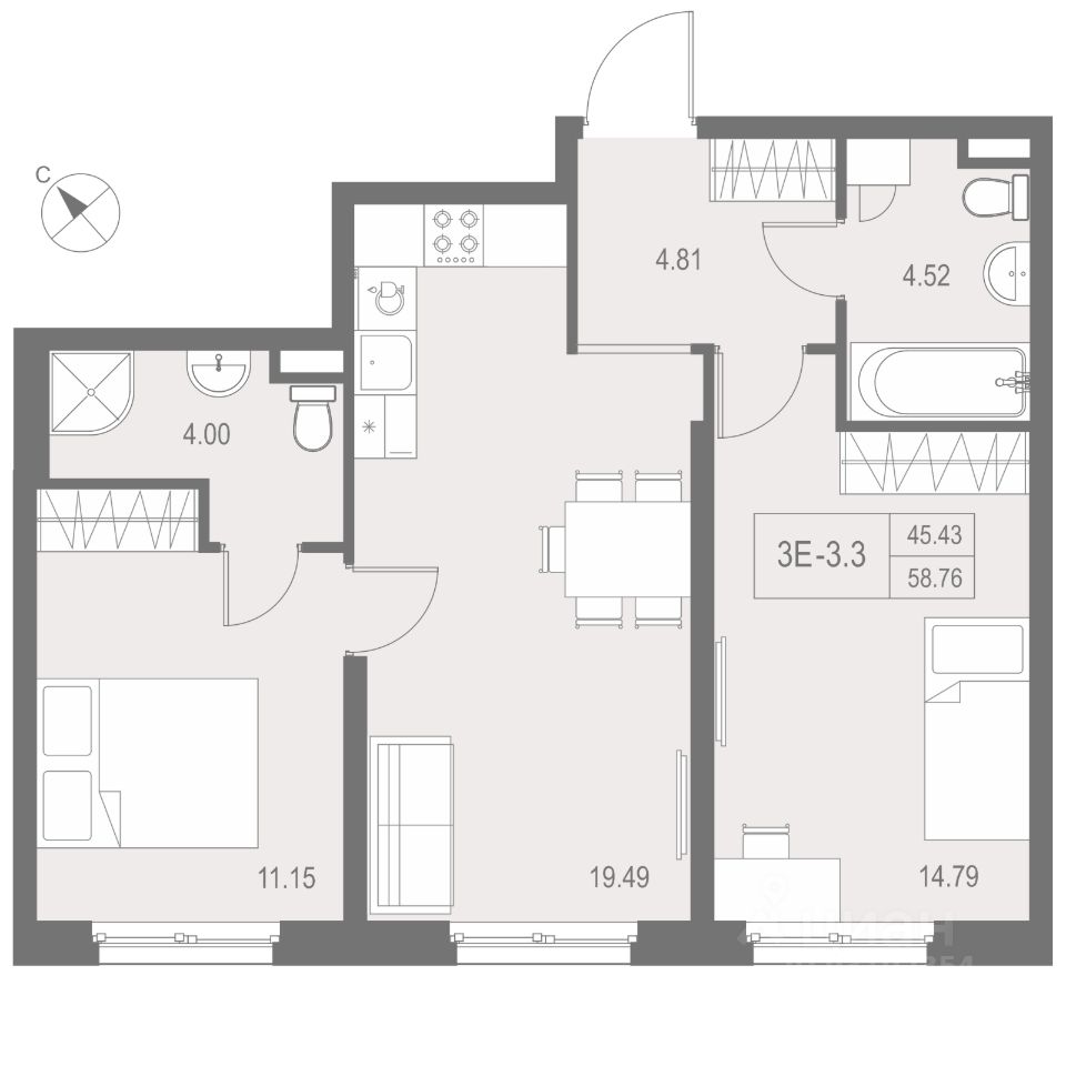 Цена со скидкой до 30% в прямой продаже от застройщика — только в этом месяце. На апартаменты действует беспроцентная рассрочка. Роскошные виды на Неву. 2-к апартамент в комплексе класса бизнес-лайт Зум на Неве на 11-м этаже. Общая площадь 58,76. Без отделки.