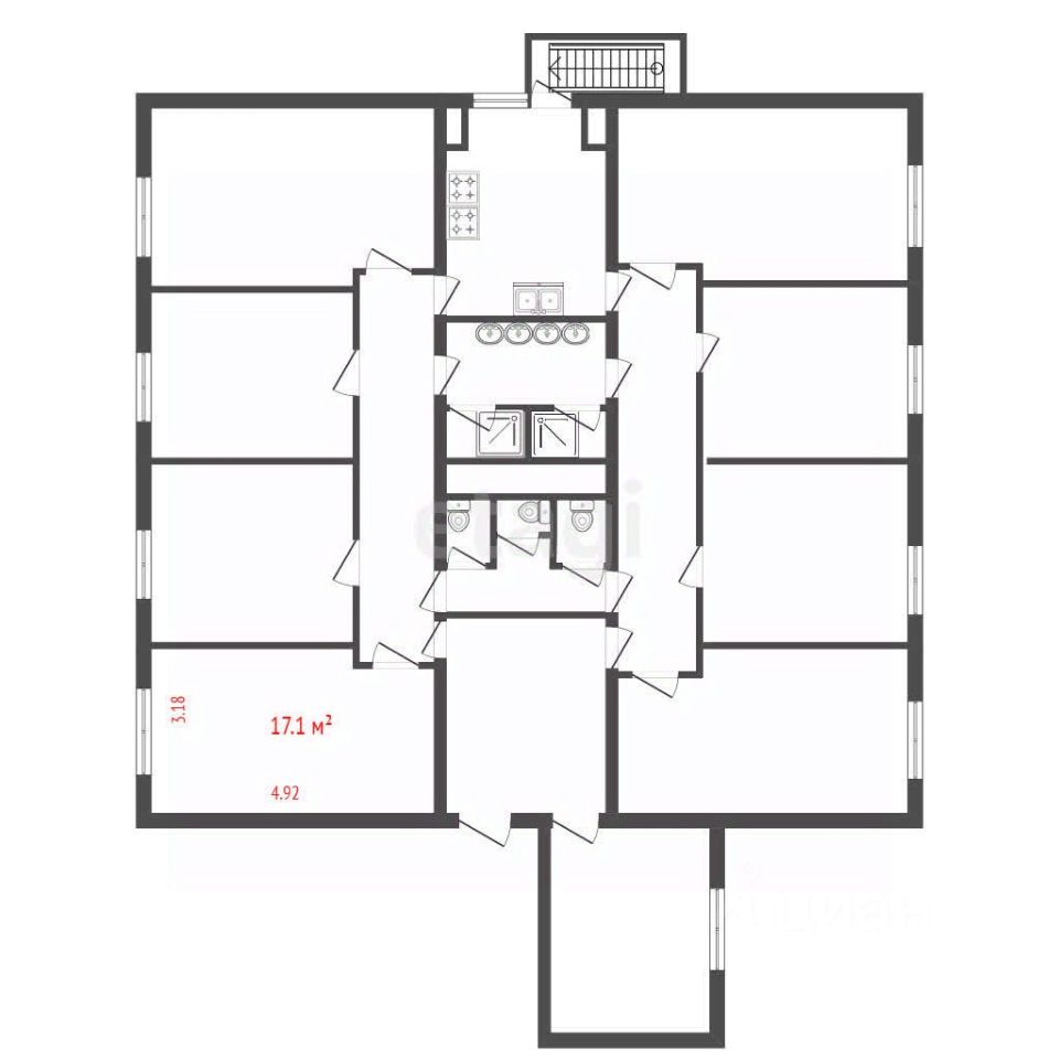 Продается КОМНАТА площадью 17,1 кв.м. Комната чистая, светлая и солнечная, правильной прямоугольной формы с хорошим косметическим ремонтом и подвесным потолкам - можно заезжать и жить. Вид из окон во двор на новый ЖК "Наука" и гимназию им. Сервантеса. Расположена комната в одном крыле 8-ми комнатной коммунальной квартиры, в каждом крыле по 4 комнаты. Рядом продаются ещё две комнаты, каждая площадью по 12,8 кв.м., одна комната от этой же семьи. С жильцами из соседнего крыла пересечения очень редкие, только на кухне и в комнате с умывальниками.
