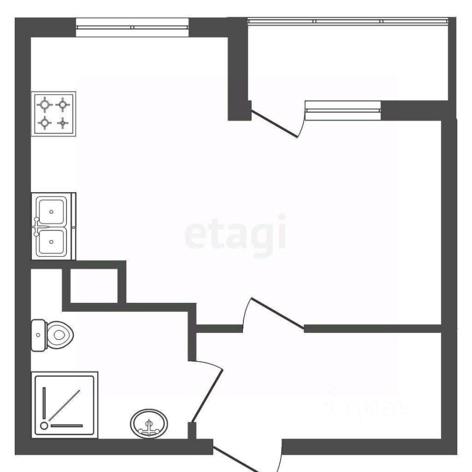 Просторная студия с двумя окнами, лоджией и большой прихожей.
