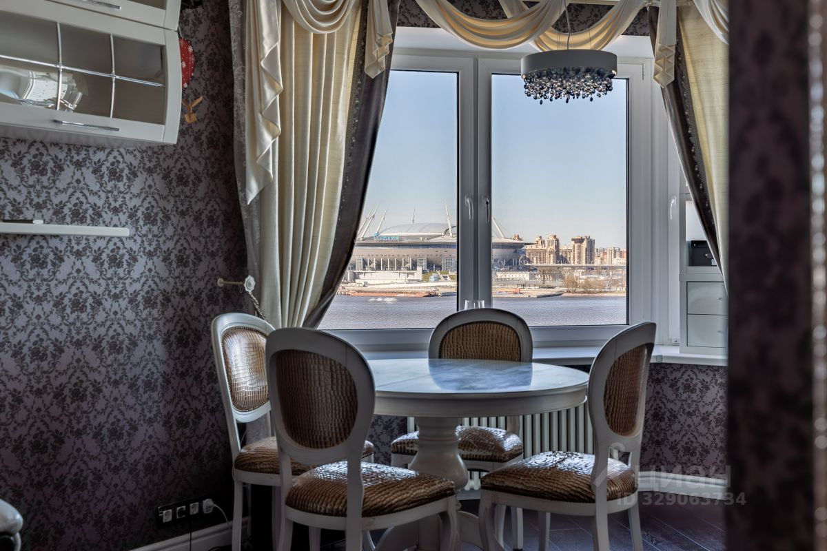Внимание! В продаже уникальная евротрехкомнатная квартира с потрясающими видами на Лахта центр и стадион Зенит Арена. В квартире выполнен дизайнерский ремонт с применением дорогих высоко качественных материалов.