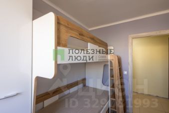 Вторая комната (вытянутая): Здесь расположена практичная двухъярусная кровать, шкаф и оборудовано рабочее место.