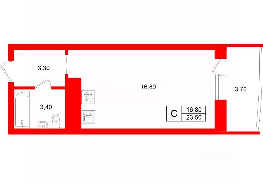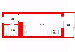 Квартира расположена на десятом этаже 12-этажного монолитного дома, построенного в 2015 году. Здесь высокие потолки — 2,8 метра, что создаёт ощущение простора. Общая площадь квартиры составляет 23.5 квадратных метров. Есть лоджия, где можно обустроить место для отдыха. Дом оснащен охраной и видеонаблюдением по периметру.