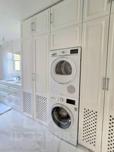 Большая ванная комната с местами хранения и техникой , так же гостевая туалетная комната с душем .