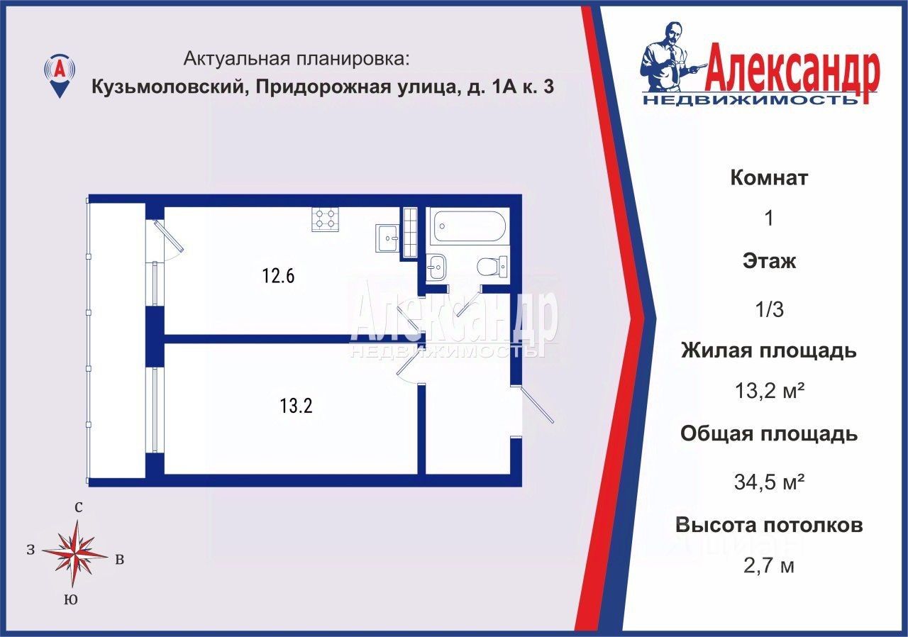 1706452 В продаже однокомнатная квартира в ЖК "Северное Трио" — готовая для жизни или сдачи в аренду!