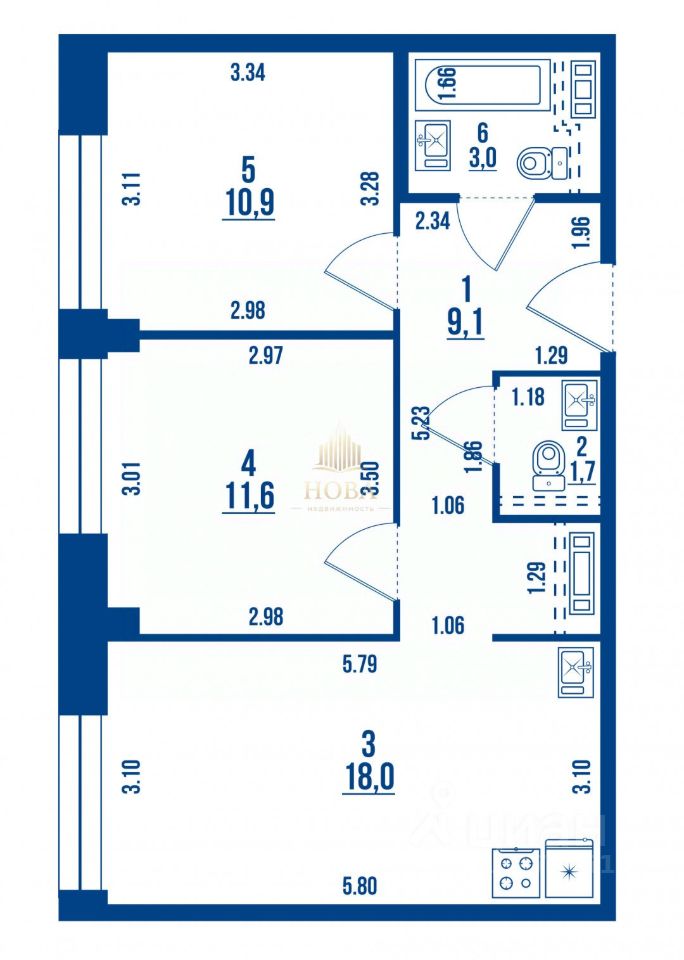 Свет и простор: Второй санузел (2 с/у) добавляет комфорта семье, а увеличенные окна дарят максимум солнца.