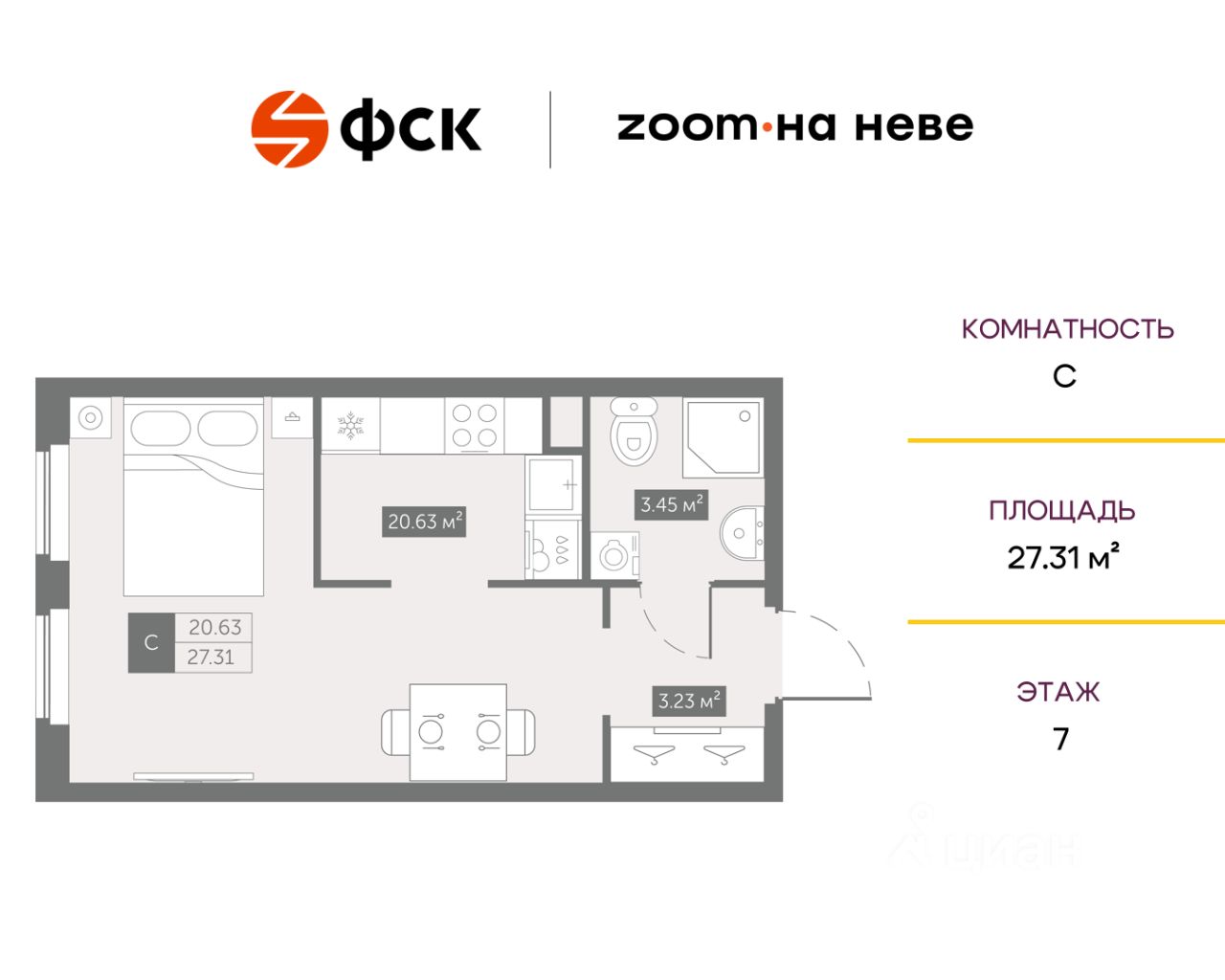 Цена со скидкой до 30% в прямой продаже от застройщика — только в этом месяце. На апартаменты действует беспроцентная рассрочка. Роскошные виды на Неву. Апартамент-студия в комплексе класса бизнес-лайт Зум на Неве на 7-м этаже. Общая площадь 27,4. Чистовая отделка.