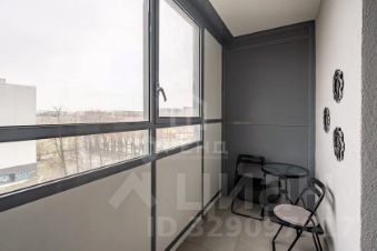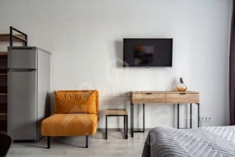 Студия имеет евроремонт, высокие потолки (2,7 м) и лоджию, где можно разместить небольшой уголок для отдыха. Окна выходят во двор, что гарантирует тишину и спокойствие.