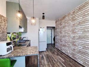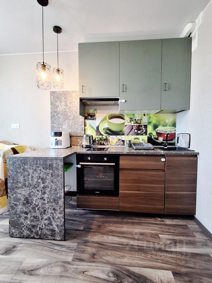 Общая площадь квартиры 33,4 кв. м. + застеклённый балкон 4 кв.м., кухня 12,2 кв.м., комната 11,2 кв.м., ванная 4,2 кв.м., в прихожей ниша для гардеробной, окна выходят на улицу, 11 этаж 12-этажного дома. Аккуратный свежий современный ремонт, вся мебель и техника остаётся по желанию покупателя. Дом 2021 года постройки, красивый двор с ландшафтным дизайном и детскими площадками.