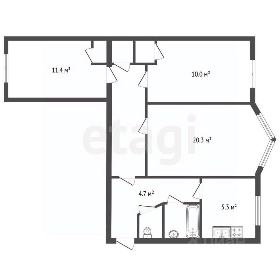 3-комнатная квартира 57,2 м² в кирпичном доме