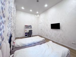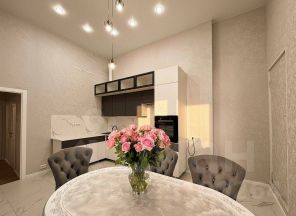 Общая площадь 86.8 кв м,с огромной гостинной и большим санузлом,гардеробной.