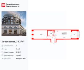 Удобная, классическая, функциональная европланировка, большая кухня-гостиная 17.02 м², вместительная прихожая 4.03 м². Общая площадь квартиры - 39.27 м², жилая 14.53 м², высота потолка 2.72 м.
