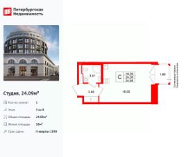 Общая площадь24,09 м²