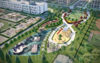 • Места притяжения: фонтан "Бионика", спортивный кластер со скейт-парком, фотозоны с арт-объектами