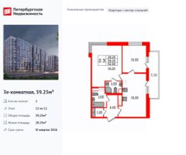 Продается просторная 2-комнатная квартира от застройщика в жилом комплексе "Бионика Заповедная" в динамичном Приморском районе.